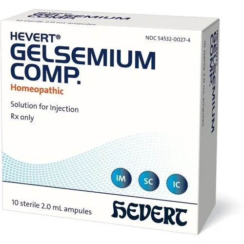 For the improvement of painful nerve conditions, such as postherpetic neuralgia, trigeminal neuralgia, or sciatic nerve pain. Hevert Gelsemium Comp. administered intramuscularly, subcutaneously or intracutaneously.